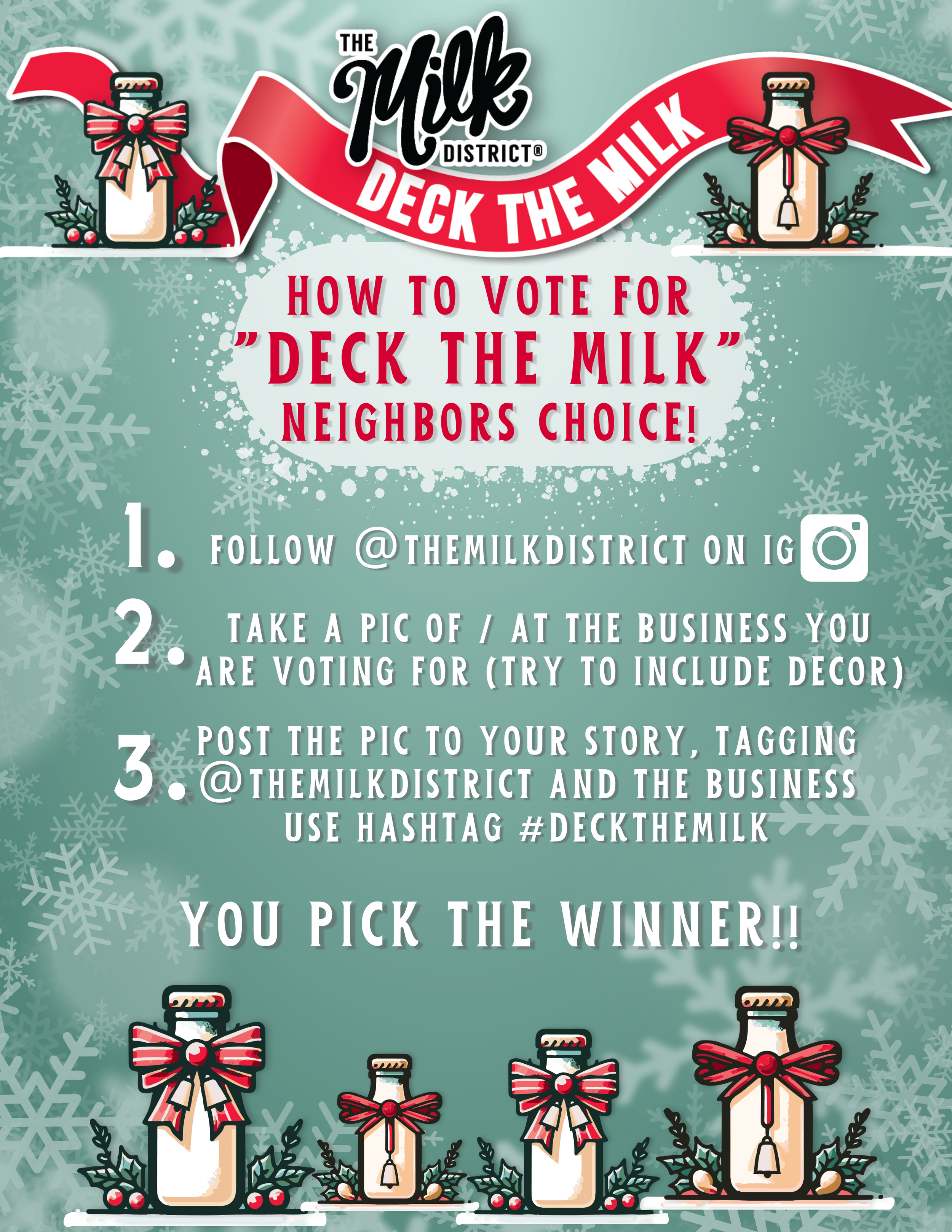 This is a great opportunity to show your holiday spirit while visiting your beloved Milk District businesses! Help draw attention to your favorites or show off new finds in our wonderful district.